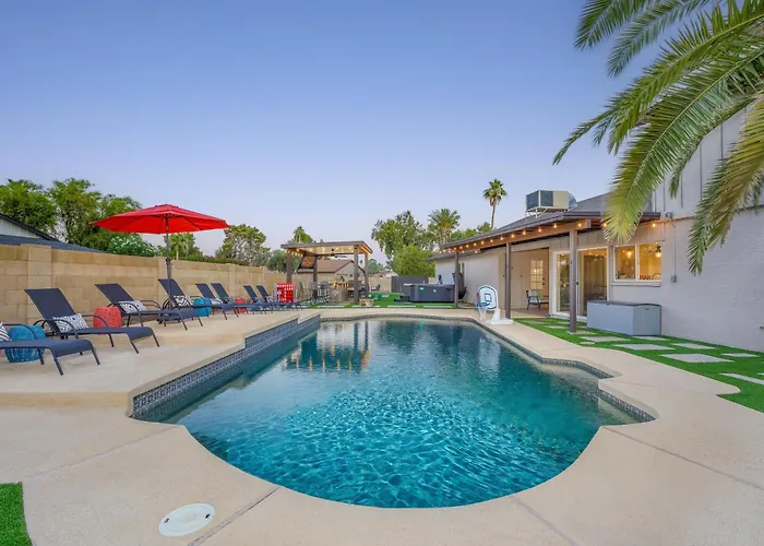 The villa is within 19 miles of Phoenix Sky Harbor International airport and 2.3 miles from such cultural points of interest as Cosanti Foundation Art Gallery. Cosanti can be found approximately 15 minutes by car from Central Location, Heated Pool, Hot Tub, Game Room villa, and WestWorld of Scottsdale Event Venue is approximately a 20-minute drive away.