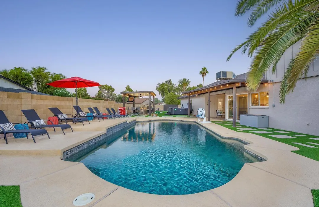 Central Location, Heated Pool, Hot Tub, Game Room villa heeft ook een ingerichte kitchenette uitgerust met koffie- en theefaciliteiten, een oven, keukengerei voor het comfort van de gasten. De dichtstbijzijnde luchthaven bij Central Location, Heated Pool, Hot Tub, Game Room villa is Phoenix Sky Harbor, op 30 km afstand. Je kunt van wandelen, paardrijden en fietsen bij deze woning profiteren.